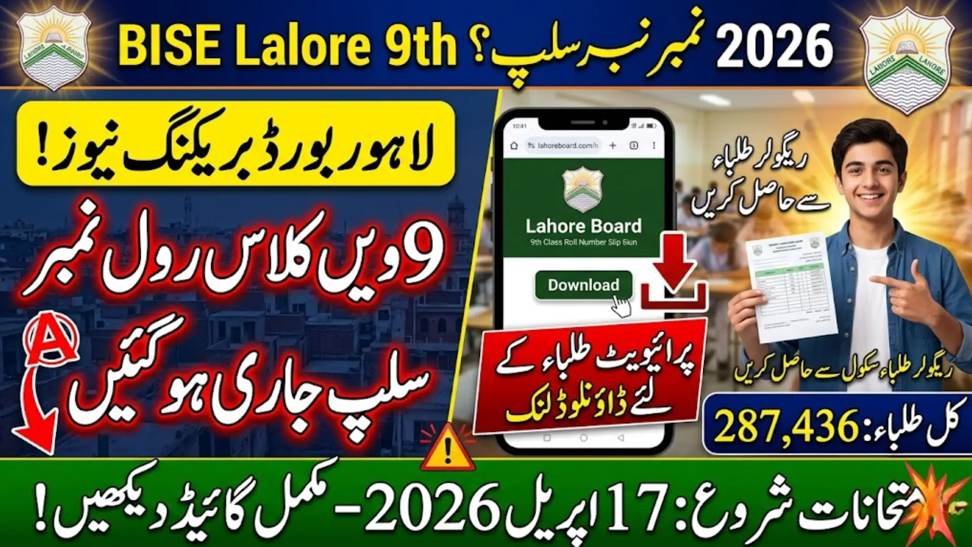 This year, a total of 287,436 students are expected to appear in the 9th class examinations under Lahore Board. This large number reflects the scale at which the board operates and the importance of proper exam management.